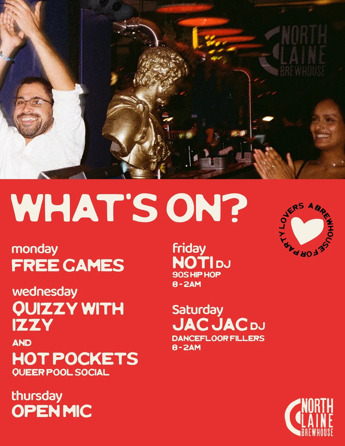 MON - THU : 12 PM - 11:30 PM - FREE GAMES EVERY MONDAY. BRIGHTONS BIGGEST QUIZ EVERY WEDS .